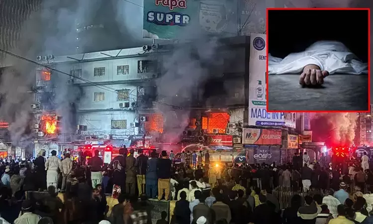 பாகிஸ்தான்: வணிக வளாகத்தில் தீ விபத்து 3 பேர் பலி; பலர் காயம்