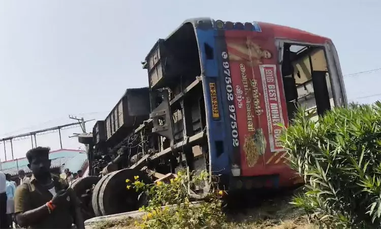 மதுரையில் இருந்து பழனிக்கு சென்ற அரசுப் பேருந்து, சமயநல்லூர் அருகே தேசிய நெடுஞ்சாலையில் டயர் வெடித்து கவிழ்ந்து விபத்துக்குள்ளானது. இதில் 20 பயணிகள் காயம் அடைந்தனர்.