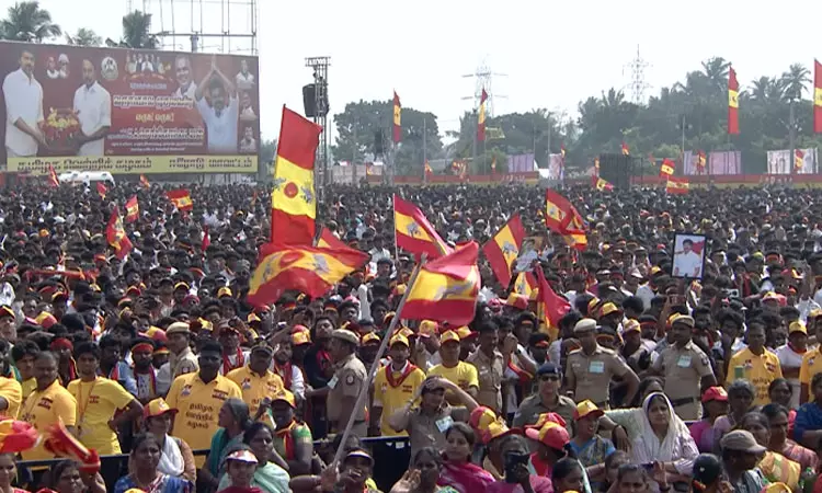 ஈரோட்டில் த.வெ.க. பொதுக்கூட்டம்: தொண்டர்களால் நிரம்பிய மைதானம்