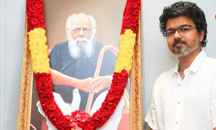 தவெகவின் கொள்கை தலைவர்களில் ஒருவரான தந்தை பெரியாருக்கு பனையூரில் தவெக தலைவர் விஜய் மரியாதை செலுத்தினார்.