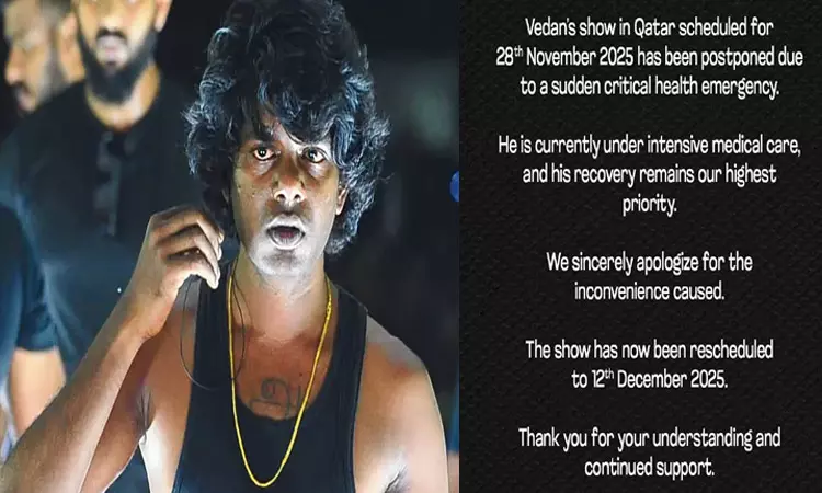 இந்த நிலையில், திடீர் உடல் நலக் குறைவால் பாடகர் வேடன் மருத்துவமனையில் அனுமதிக்கப்பட்டு அவருக்குத் தீவிர சிகிச்சை அளிக்கப்பட்டு வருவதாகக் கூறப்பட்டுள்ளது. இருப்பினும், அவருக்கு ஏற்பட்ட உடல் பாதிப்புகள் குறித்த தகவல்கள் வெளியிடப்படவில்லை. கத்தாரில் நாளை நடைபெறவிருந்த அவரது இசை நிகழ்ச்சி டிசம்பர்12ம் தேதிக்கு ஒத்திவைக்கப்படுவதாக அதிகாரப்பூர்வமாக அறிவிக்கப்பட்டுள்ளது.
