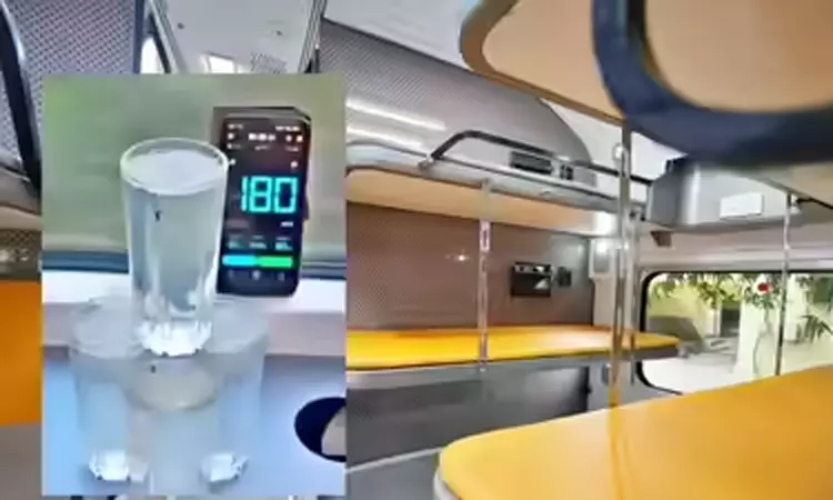 “வந்தே பாரத் ஸ்லீப்பர் ரெயில் ரெயில்வே பாதுகாப்பு ஆணையரால் சோதனை செய்யப்பட்டது. இது கோட்டா–நாக்டா பிரிவுக்கு இடையில் மணிக்கு 180 கி.மீ. வேகத்தில் ரெயில் சென்று கொண்டிருந்த போது எடுக்கப்பட்டது. டம்ளரில் வைக்கப்பட்டிருந்த தண்ணீர் ஆடாமல், அசையாமல் இருந்தது ரெயிலின் புதிய தொழில்நுட்ப அம்சங்களை நிரூபித்தது” என்று அஸ்வினி வைஷ்ணவ் கூறியுள்ளார்.