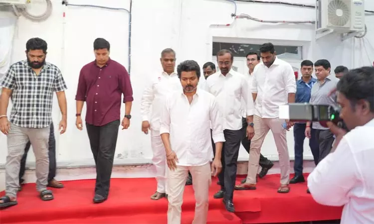 தமிழக சட்டசபை தேர்தலை எதிர்கொள்ள விஜய் தலைமையிலான த.வெ.க. தீவிரமாக தயாராகி வருகிறது. கரூர் சம்பவத்திற்கு பிறகு மீண்டும் மக்கள் சந்திப்பை விஜய் இன்று தொடங்கி இருக்கிறார். முன்னதாக சேலத்தில் இருந்து மக்கள் சந்திப்பை தொடங்க இருந்தார். ஆனால் அனுமதி பெறுவதில் ஏற்பட்ட சிக்கல் காரணமாக அந்த பயணம் தள்ளிவைக்கப்பட்டுள்ளது. இதற்கிடையே காஞ்சீபுரம் மாவட்டம் சுங்குவார்சத்திரத்தில் உள்ள ஒரு தனியார் பொறியியல் கல்லூரி வளாக உள் அரங்கத்தில் விஜய்யின் மக்கள் சந்திப்பு நிகழ்ச்சி இன்று நடைபெற்றது.