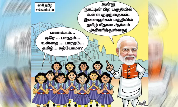 தமிழ்நாட்டிலும் இருந்து மாணவர்கள் காசி சங்கமம் நிகழ்வுக்கு அழைத்து செல்லப்பட்டனர். இந்த பின்னணியில் பிரதமர் நரேந்திர மோடி வாரணாசியை சேர்ந்த இந்தியை தாய் மொழியாகக் கொண்ட குழந்தைகள் தமிழில் பேசும் ஒலிக்குறிப்பை ஒலிக்க செய்து நாட்டு மக்களை கேட்க செய்தார். அந்த மழலைகள் பிஞ்சு குரலில் செவிகளுக்கு திகட்டாத தமிழ்மொழியில் பேசியது கேட்பவர்களை புல்லரிக்க வைத்தது.