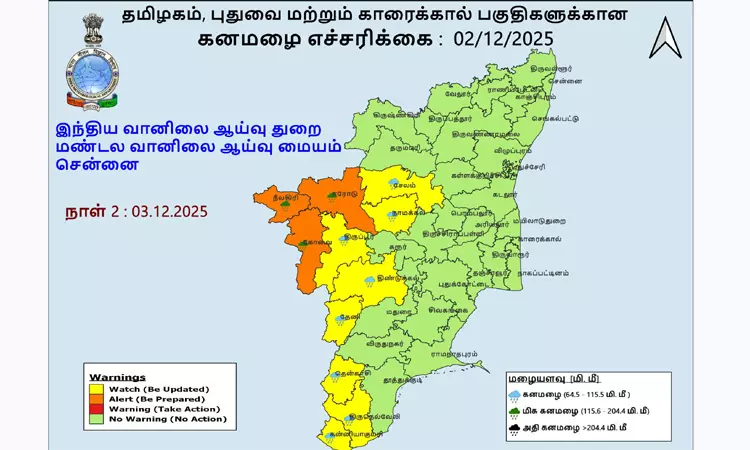 நாளை (03-12-2025) கனமழைக்கு வாய்ப்புள்ள மாவட்டங்கள்