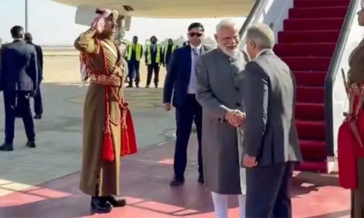 பிரதமர் மோடியை ஜோர்டான் பிரதமர் ஜாபர் ஹாசன் நேரில் சென்று வரவேற்றார்.