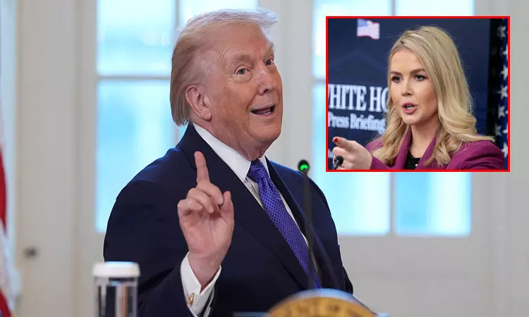 டிரம்புக்கு பின்னால் நின்று அதனை கேட்டு கொண்டே இருந்த லீவிட் சிரித்து விட்டார்.